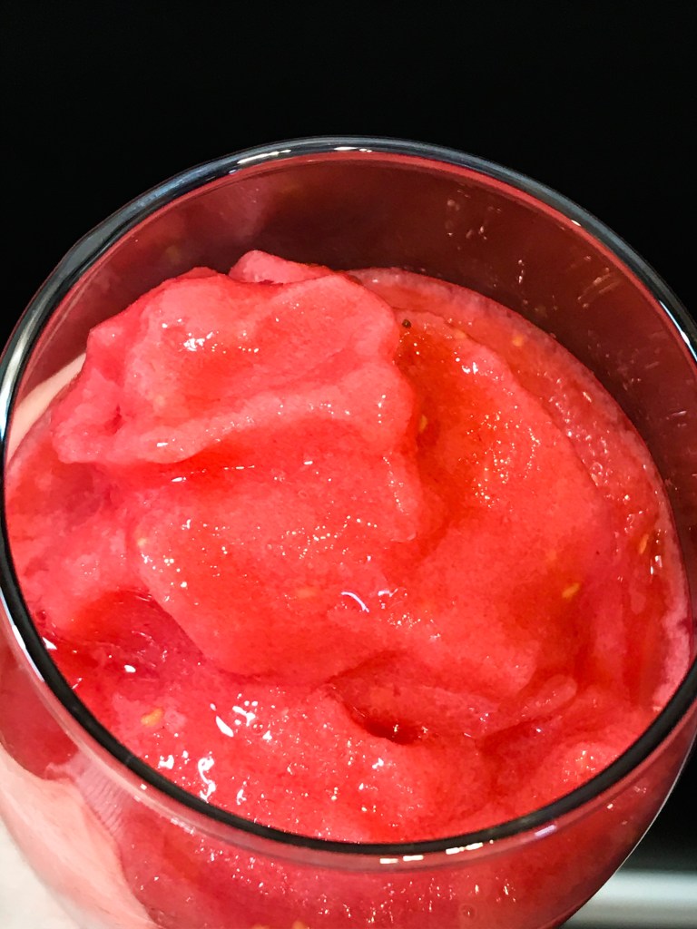 3) Once your slushy is done to your preferred consistency, spoon it out into your glasses, add a cute reusable straw, and consume immediately – preferably in a sunny garden or on a sun-trapped balcony.