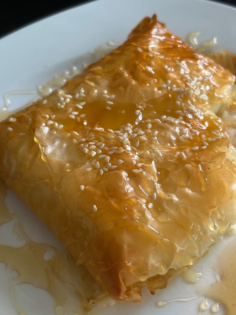 - Bake for 15-20 minutes or until the pastry is golden brown. Remove from the tray and place on a plate. Drizzle generously with honey.
