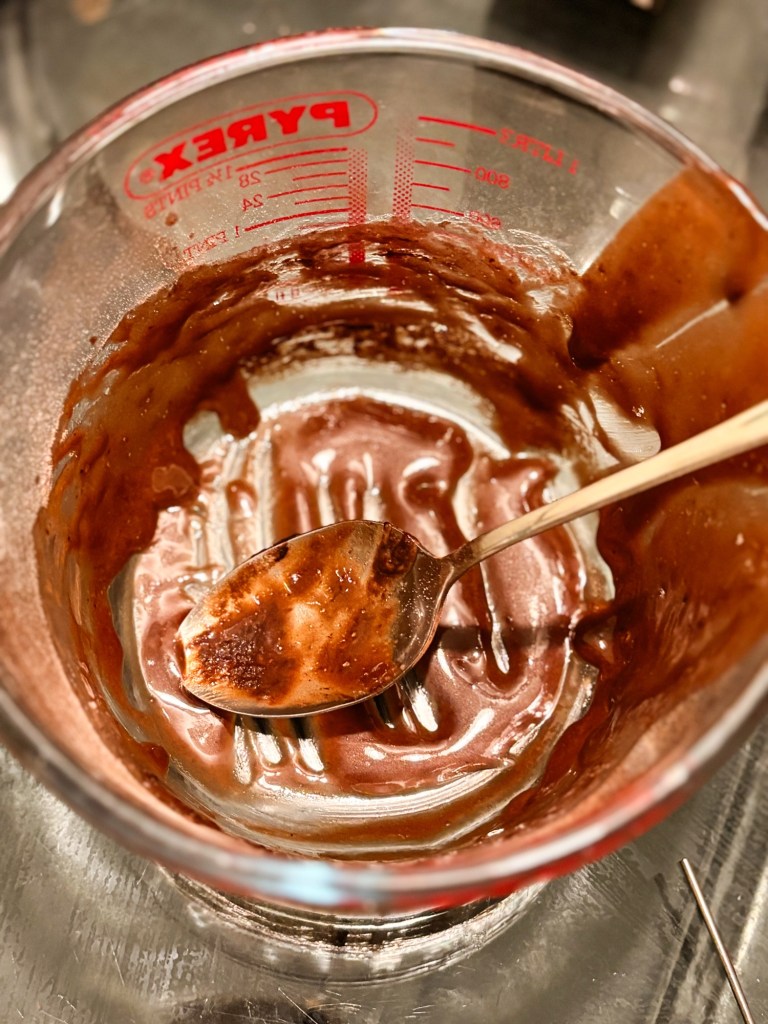 - Combine everything together in a jug until you reach a smooth chocolate batter consistency.